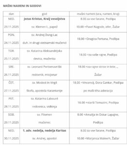 Ta teden bo maša v Žažarju tudi med tednom, v sredo, 26.11. ob 18.00...