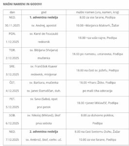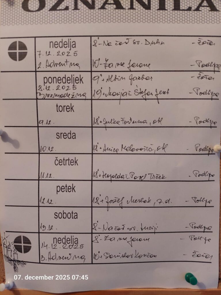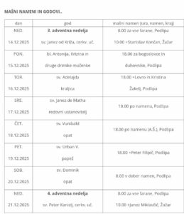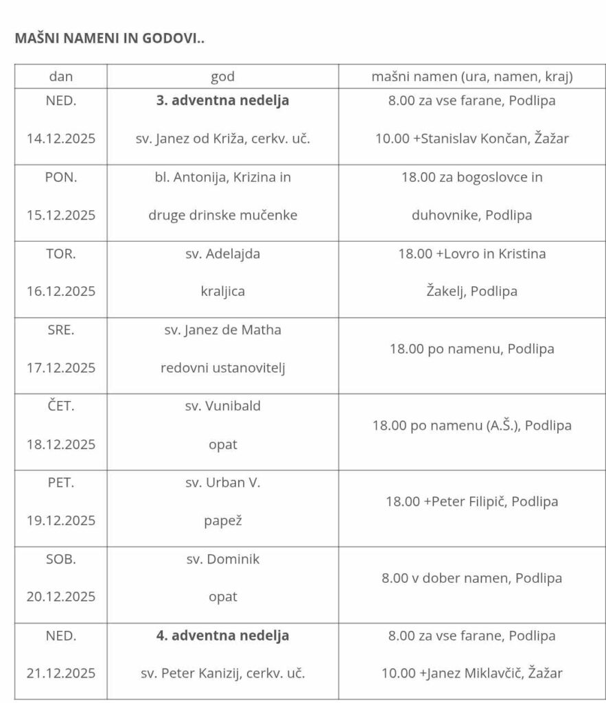 Ta teden bo maša v Žažarju na četrto adventno nedeljo, ob 10.00 uri, za...