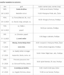 Ta teden bo maša v Žažarju na četrto adventno nedeljo, ob 10.00 uri, za...