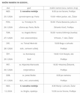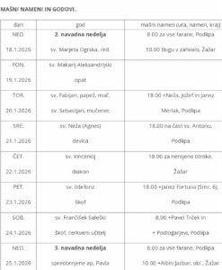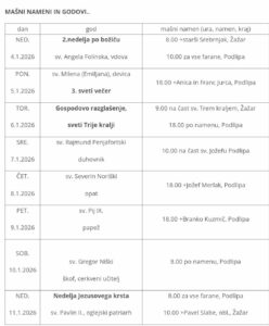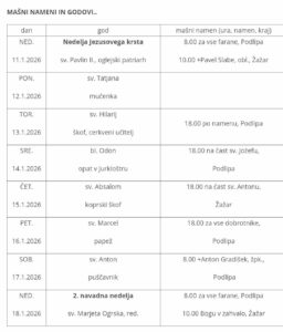 Ta teden bo v Žažarju prvič maša v četrtek, 15. 1. ob 18.00 uri,...