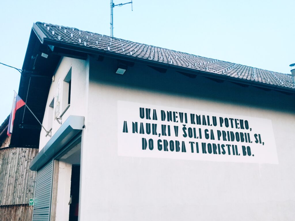 “Uka dnevi kmalu poteko, a nauk, ki v šoli ga pridobil si, do groba ti koristil bo!” Tako so okrog leta 1927 zapisali na žažarsko osnovno šolo, ki pa je že od aprila lani ni več. Ker je napis edinstven, smo se že takrat odločili, da ne sme iti v pozabo. Zato smo ga poslikali in enako zapisali na zunanjo steno gasilskega doma.
