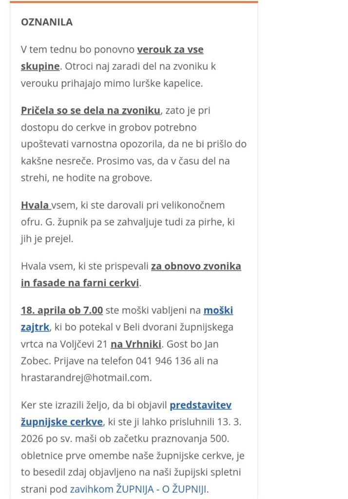 Župnik se vsem zahvaljuje za darove pri ofru na velikonoč v Podlipi in za pirhe ob blagoslovu jedi.
