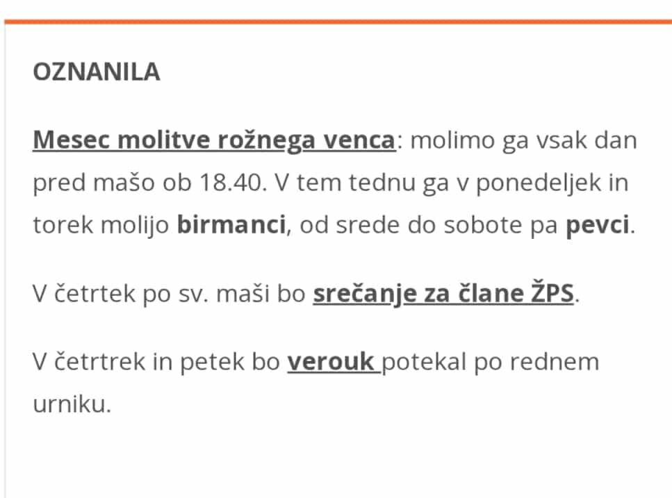 V mesecu oktobru se 20 minut pred mašo moli rožni venec.
