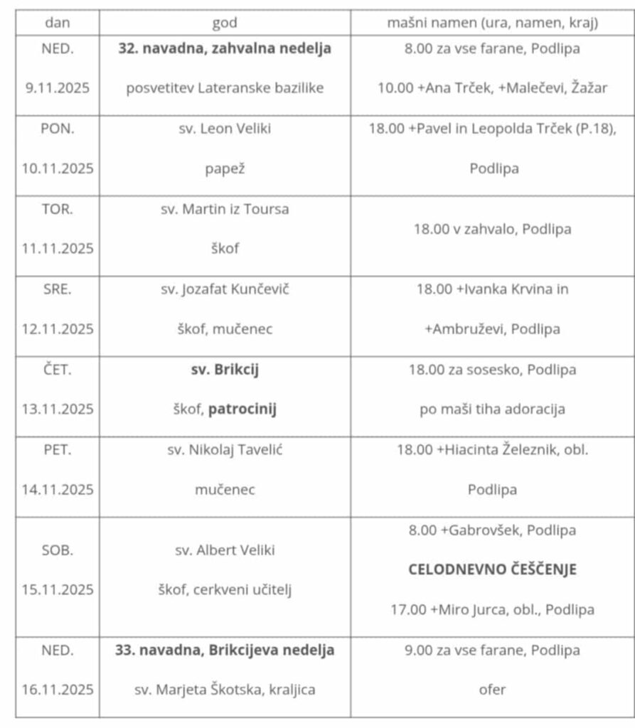 V nedeljo bo maša v Podlipi ob 9.00 uri. Po maši bo darovanje za farno cerkev.
